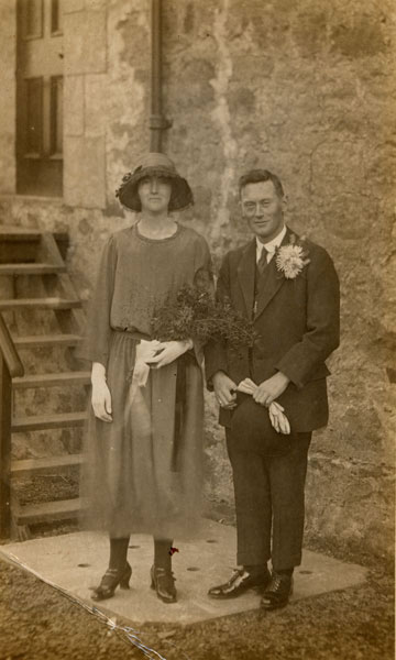 James Edward Archbold and Ada Taylor on their wedding day. Photographed at the rear of the Craster Memorial Hall.